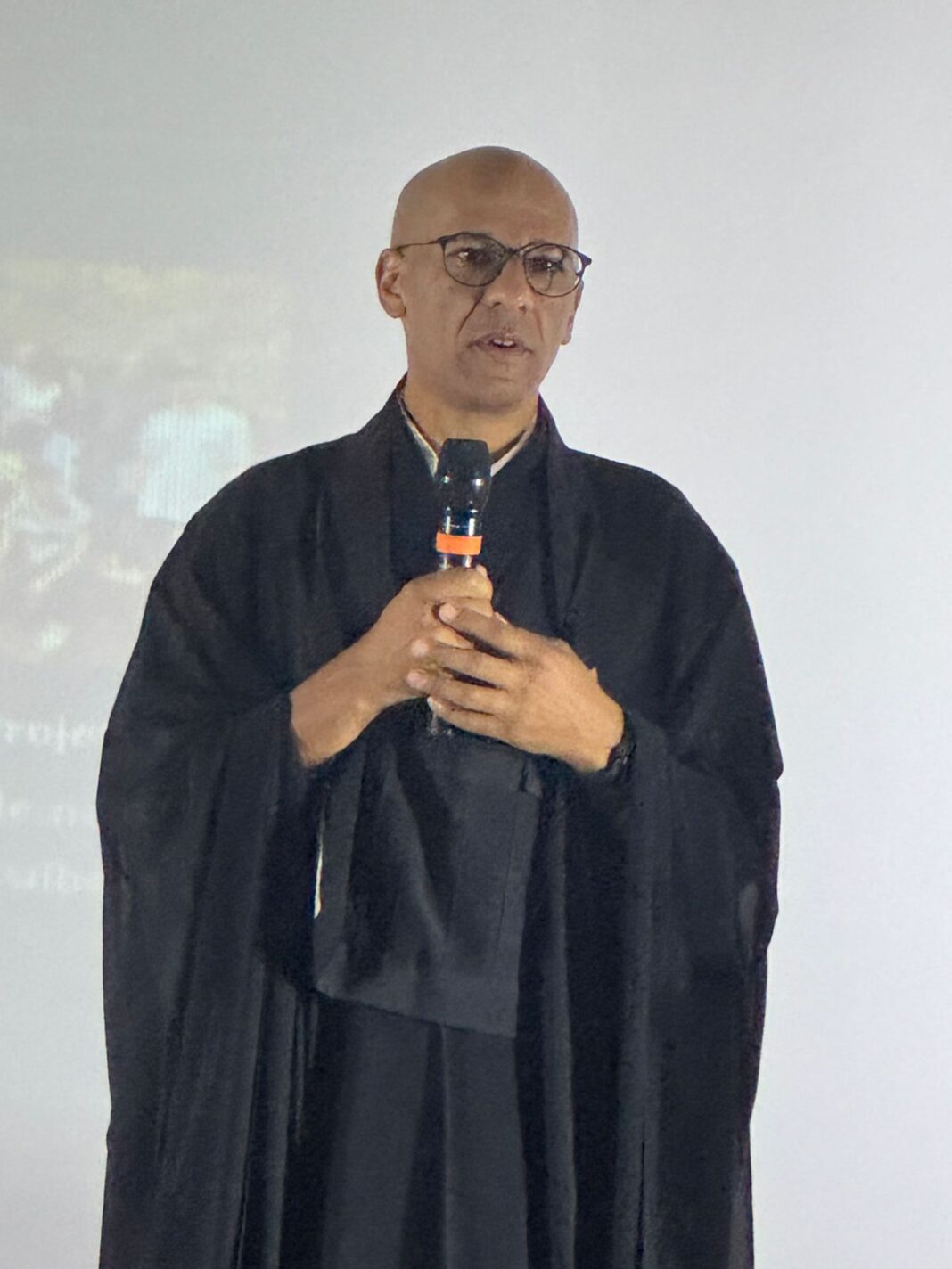 As apresentações foram abertas por Mauro Daffre, fundador e coordenador de comunicação do Grupo de Sustentabilidade (GS); Carlos Del Nero, Diretor Titular do Ciesp Cotia, Agnaldo Alfredo, Secretário de Turismo de Cotia, Sonaidy Lacerda, coordenadora de planejamento do Café Ambiental e gerente de sustentabilidade nas Américas do Grupo Spirax Sarco; Estela Magda Brugnera, Diretora da Star Planet Projects e pela Abadessa do Templo, Mestra Miao You, que brilhantemente fez uma relação entre os cinco preceitos do budismo e a preservação do meio ambiente.