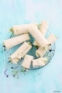 Sanduíche enrolado de pepino e queijo fresco