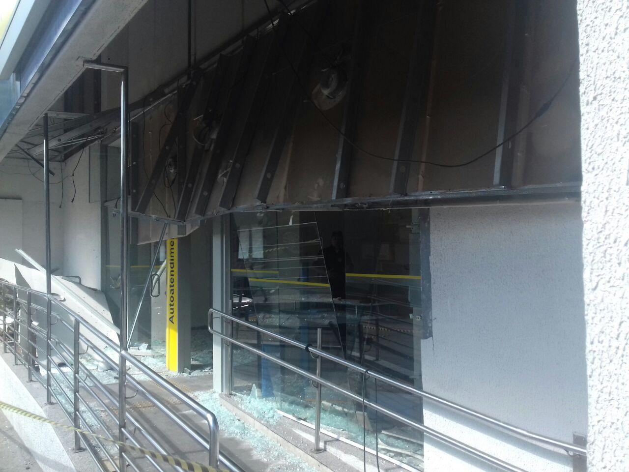 Criminosos explodiram caixas eletrônicos de uma agência do Banco Brasil, localizado no número 152 da Avenida Nossa Senhora de Fátima, no centro de Cotia.