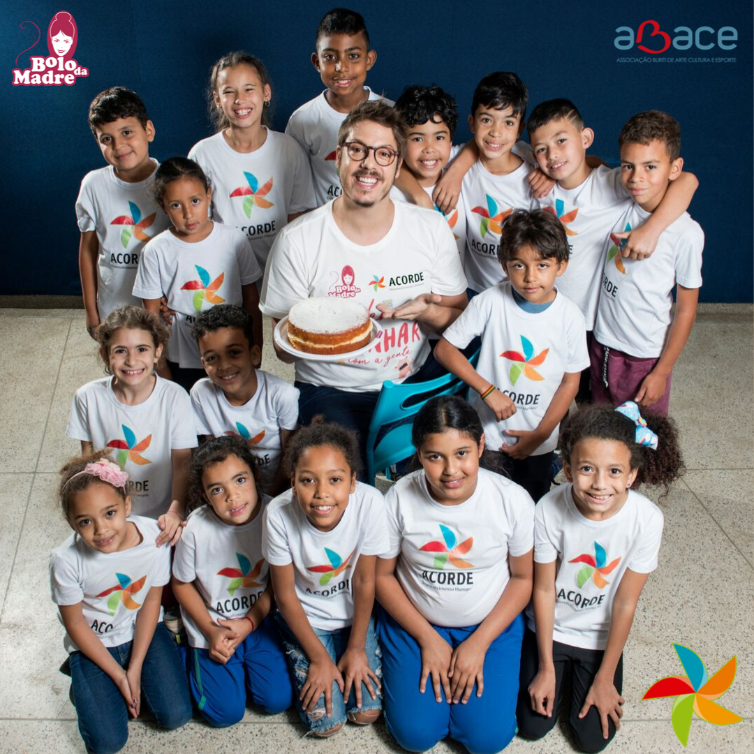 Neste mês de outubro, a Rede Bolo da Madre está revertendo 100% das vendas do Bolo Sonho em doação para Associação Acorde, ONG que promove o desenvolvimento humano de crianças, adolescentes, jovens e adultos, residentes na região de Embu das Artes e Cotia, por meio de atividades artísticas, culturais e esportivas.