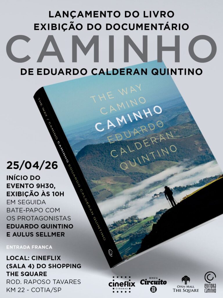 O fotógrafo e documentarista granjeiro Eduardo Quintino fará o lançamento do seu livro Caminho com apresentação do Documentário Caminho, sobre o livro, na Granja Viana, no dia 24 de abril, no Cineflix do Open Mall The Square. Caminho, é um trabalho autoral que une fotografia, relato e espiritualidade em torno da experiência de peregrinar pelo Caminho de Santiago de Compostela.