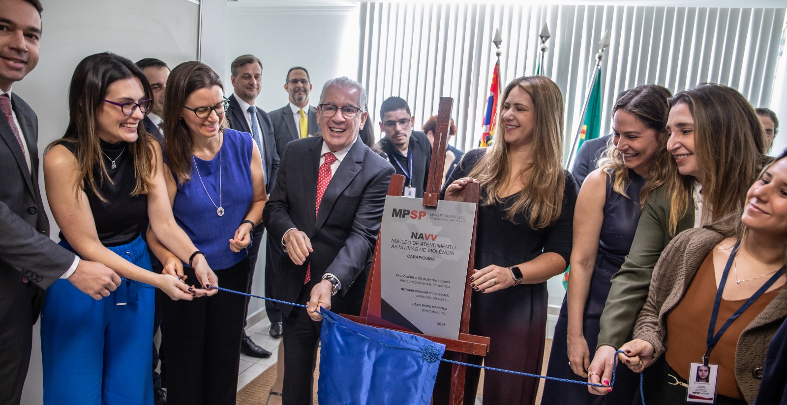 A solenidade contou com a presença de Ivan Agostinho (subprocurador-geral de Justiça Criminal), Paulo Quissi (OAB), tenente-coronel Marcelo Henrique (comandante do 33º Batalhão da PM), delegado Marcelo Prado, delegado Mário Garrido, Fábio Goulart (chefe de Gabinete da Subprocuradoria-Geral de Justiça Criinal), Mylene Comploier (chefe de Gabinete da PGJ), Fernanda Moretti (assessora do CAOCrim), Karina Bagnatori (Diretoria-Geral), e Marco Antonio de Souza (Promotoria de Oscasco), bem como dos promotores Daniele Maciel da Silva, Rodrigo Belline Lopes, Rafael Ribeiro do Val, Natalia Amaral Azevedo, Aldana Messutti Tardelli e Débora de Camargo Aly (promotores de Carapicuíba). A psicóloga Priscila Maria dos Santos (que atende no NAVV) e o diretor regional da Grande São Paulo, Shandro Elias de Souza, também prestigiaram o evento.