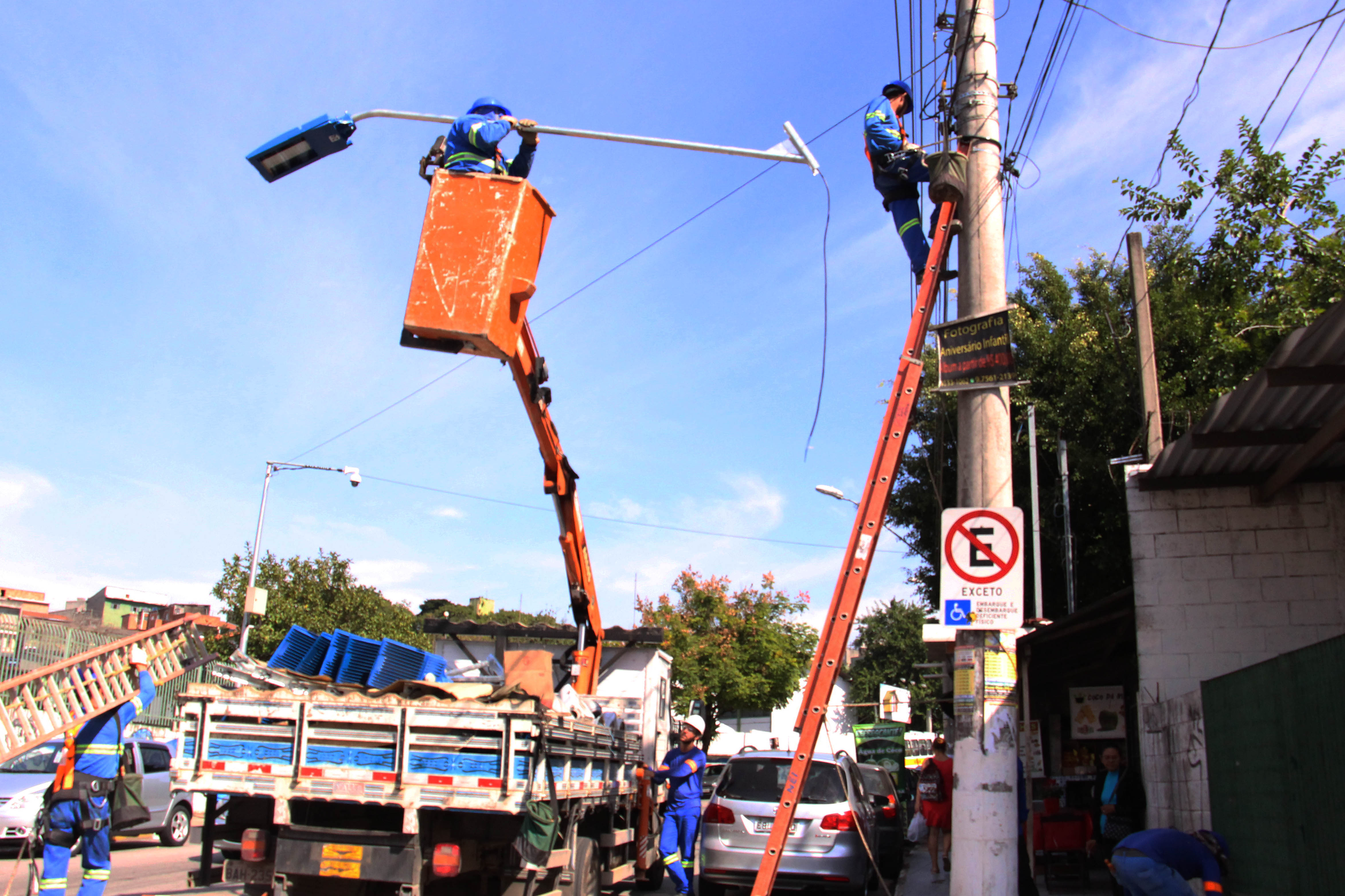Só a avenida Rui Barbosa recebeu 110 novas lâmpadas. Já a Inocêncio Seráfico, região entre a avenida Mirian e Marginal do Ribeirão, teve a instalação de 179 e a estrada da Fazendinha 185.
