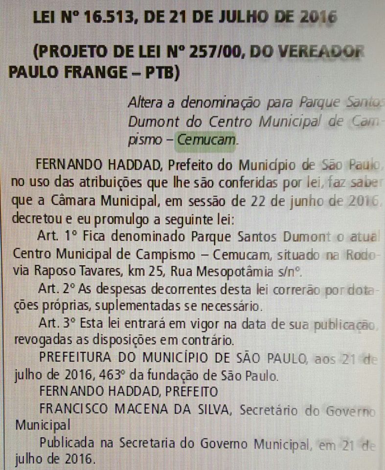 De acordo com a assessoria de Paulo, o projeto foi inserido na fila da Câmara a pedido de um grupo de usuária da época que tinha interesse na mudança do nome.
