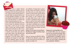 Camila Ribeiro tinha 12 anos, quando em 2013 enviou para a gente uma carta – veiculada em julho, na edição 163 – sobre o artigo “Você é muito mais bonita do que pensa”, escrito pelo colunista Marcos Sá e publicado na edição 162.