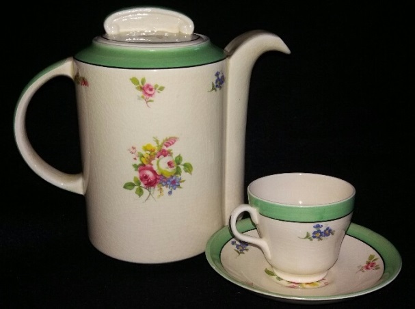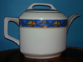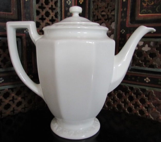 Bule em estilo art déco com corpo alto, cônico e octogonal.