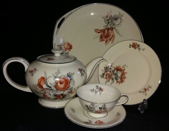 Porcelana cor creme decorada com imagens de flores cuja riqueza de detalhes contrasta com a discreta combinação das cores sépia e marrom. O equilíbrio entre as cores de fundo, dos desenhos e o friso prateado, somado ao design clássico das formas arredondadas, lisas e simplificadas confere ao conjunto qualidades que permitem que seja usado e admirado ao mesmo tempo.