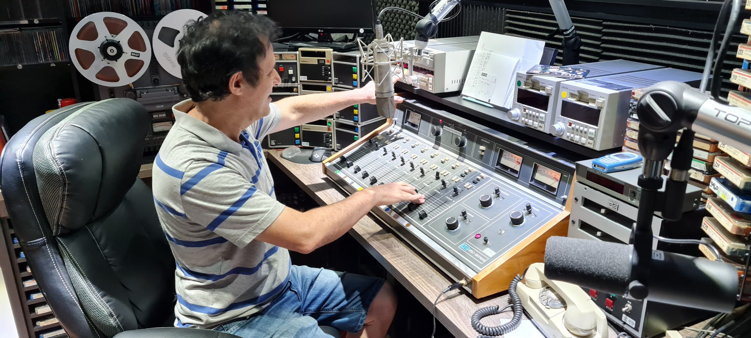 Visitamos os estúdios da Web Vintage Rádio, comandada pelo piloto de avião, Rogério Júnior, que foi locutor de rádio entre 1982 e 1992. Com os equipamentos que traz de outros países, Rogério conseguiu manter a essência, tanto no espaço quanto na programação, de como eram as rádios há mais de 30 anos.