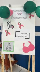 O mês de outubro também é conhecido pelo movimento ‘Outubro Verde’- ação que marca o combate à sífilis. E é em outubro que também é lembrado o Dia Nacional de Combate à Sífilis e à Sífilis Congênita (terceiro sábado do mês – 21 de outubro). Por ocasião da passagem da data, a Secretaria de Saúde, por meio da equipe do Serviço de Atendimento Especializado/Centro de Testagem e Acolhimento (SAE/CTA) realizou diversas ações educativas, em parceria com a Atenção Básica, com o objetivo de informar a população sobre a importância do diagnóstico e tratamento adequados. Entre o público-alvo estiveram as gestantes em consultas de pré-natal na rede municipal.