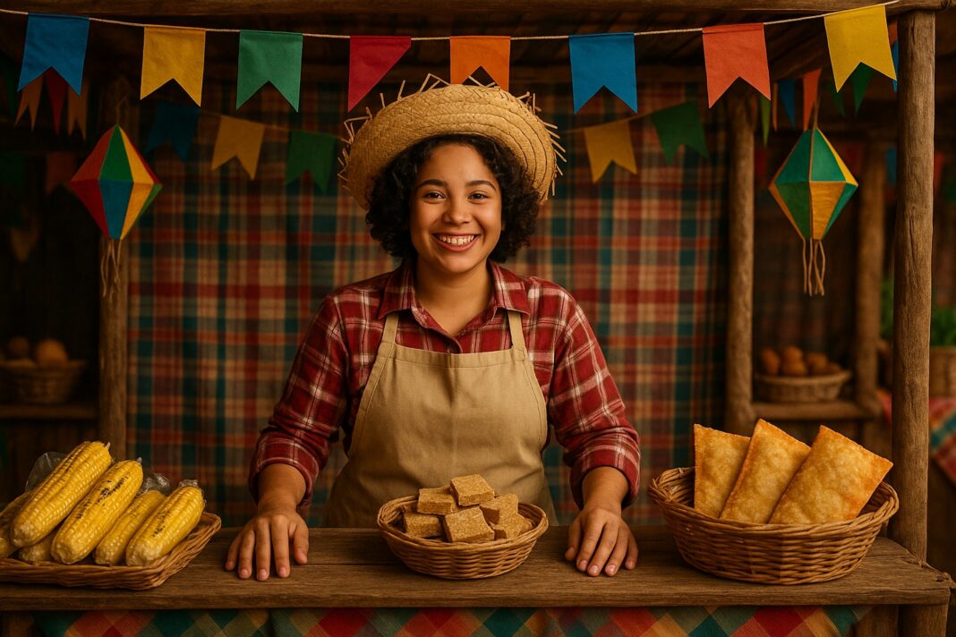 Comidas típicas, decoração artesanal, roupas caipiras e serviços de entretenimento movimentam a economia criativa durante o mês de junho. A temporada de festas juninas, que atualmente se estendem até o fim do mês de julho, é uma ótima oportunidade para empreender, mesmo sem experiência prévia. De marmitinhas com canjica, arroz doce e pamonha a kits de brincadeiras, bazares e figurinos personalizados, as possibilidades de ganhar dinheiro com baixo investimento são diversas – e valem a pena também fora das tradicionais quermesses.