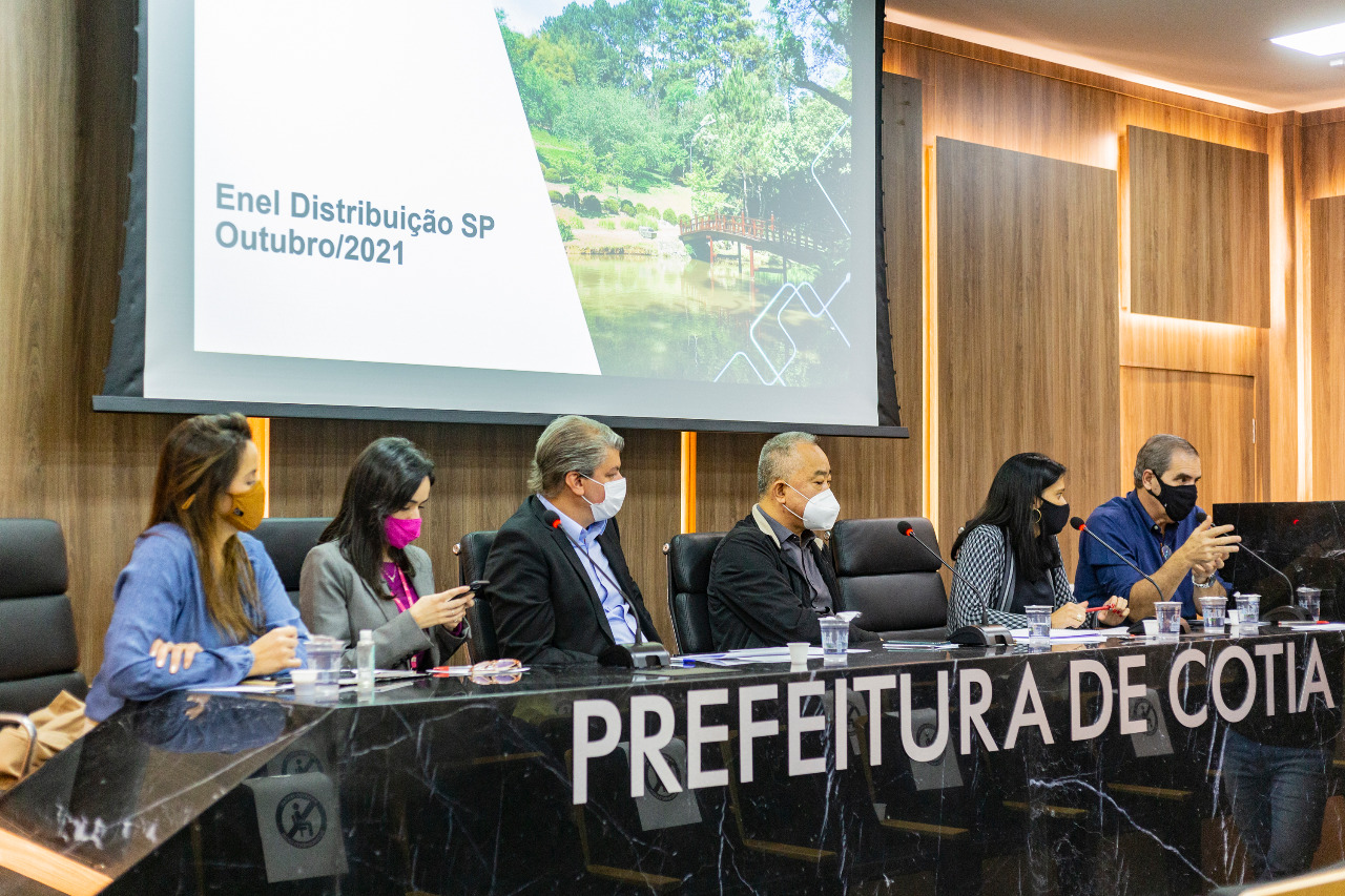 Na manhã da última sexta-feira (8/10), a Prefeitura de Cotia, por meio da Secretaria de Governo, realizou uma reunião com representantes da concessionária de energia elétrica, Enel, para apresentar demandas de moradores em relação aos serviços de fornecimento de energia na cidade, valores cobrados, podas de árvores, entre outros assuntos. A reunião contou com a presença do presidente do Legislativo, vereador Celso Itiki, e de todos os vereadores de Cotia. Por parte da empresa estiveram o diretor da Enel, André Oswaldo, Danieli Mohacsi, gestora de relacionamento, Tatiana Tinoco, responsável por clientes governo e Erica Frade, executiva de atendimento.