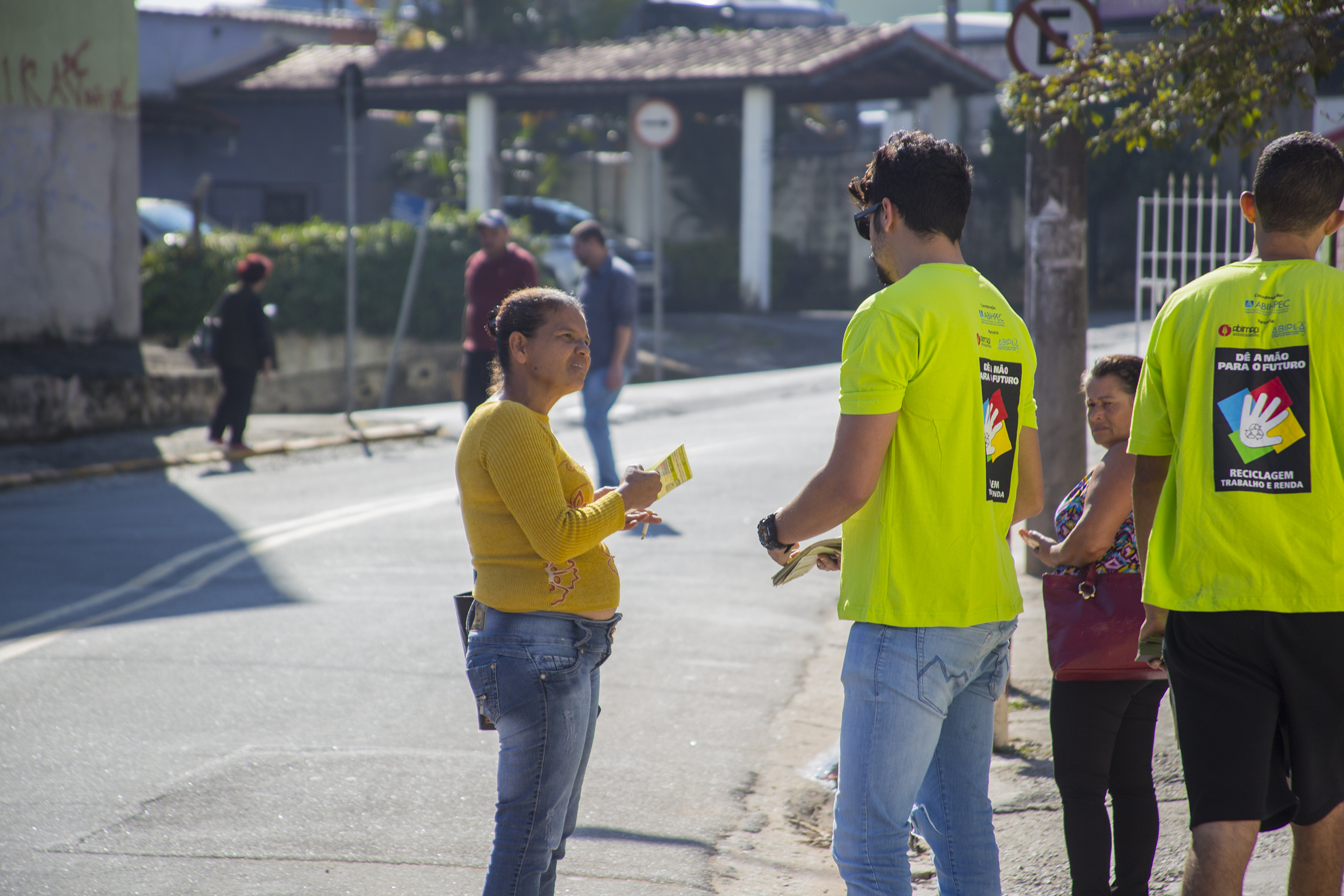 Na ação foram feitas abordagens a moradores e comerciantes e distribuídos panfletos informativos sobre o que pode ser destinado à coleta seletiva.