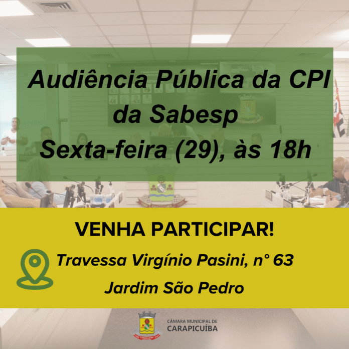 Composta pelos vereadores Professor Ladenilson (MDB), Fabrício Souza (Repu), Arlen Santos (PODE), Davson Santos (PSDB) e Serginho Junior (UNIÃO), a CPI da Sabesp tem como objetivo avaliar a qualidade do serviço prestado pela Concessionária e os frequentes danos causados por ela nas ruas de Carapicuíba.