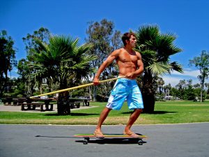 Uma versão do Stand Up Paddle, só que no asfalto. O Skate Paddle mescla remo, skate, surfe e stand up paddle. Para praticar a modalidade esportiva é preciso ter um hangboard e um remo com base de borracha. Além de divertir, em uma hora é possível queimar cerca de 600 calorias.