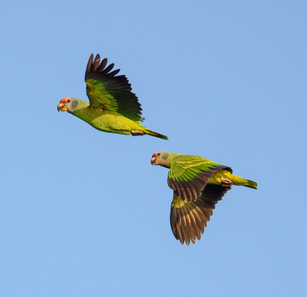 A intensa exploração da mata colocou os papagaios-de-cara-roxa em risco durante muitos anos, mas trabalhos recentes de conservação tiraram a espécies da Lista Vermelha, o que permitiu retomar uma característica dessas aves: a revoada dos papagaios-de-cara-roxa. No início da manhã e ao final da tarde, milhares de pássaros voam juntos, em um cenário único, principalmente durante o outono. Para encontrar essas aves, o lugar mais indicado é o Parque Nacional de Superagui, no Paraná, onde fica localizado o principal dormitório do papagaio-de-cara-roxa do País.