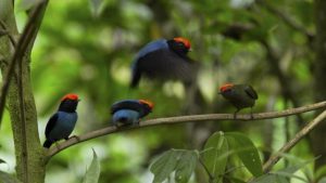 Além das cores chamativas, o tangará-dançarino desperta a atenção devido a sua dança pré-nupcial. Entre agosto e janeiro, os machos se reúnem em grupos de quatro a seis indivíduos enfileirados e se revezam em acrobacias para se exibirem para a fêmea. Após o ritual, a fêmea toma sua decisão e escolhe um parceiro. A dança se tornou tão famosa que virou destaque no documentário “Nosso Planeta”, lançado este ano pela Netflix. O pássaro pode ser encontrado nas regiões Sul e Sudeste do País, principalmente na Reserva Natural Salto Morato, onde foi gravado o documentário.