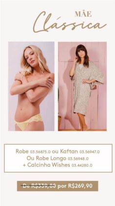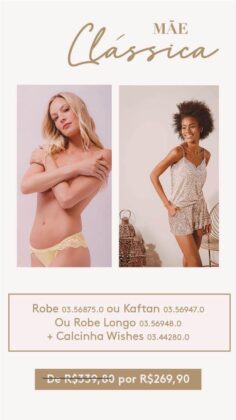 Assim como flores, não há nada mais feminino do que uma peça íntima, não é verdade? Lingeries confortáveis, bonitas e estilosas nunca são demais e são ótimas opções de presente, agradando a todas as mulheres e não seria diferente com sua mãe. Se você está em dúvida em qual comprar, a Valisere tem opções para todos os tipos de mãe. Veja no Instagram da loja, mande um zap para (11) 9 3355-0394 e surpreenda sua mãe. E se mesmo assim você ainda estiver em dúvida: aposte, então, no cartão presente da marca.