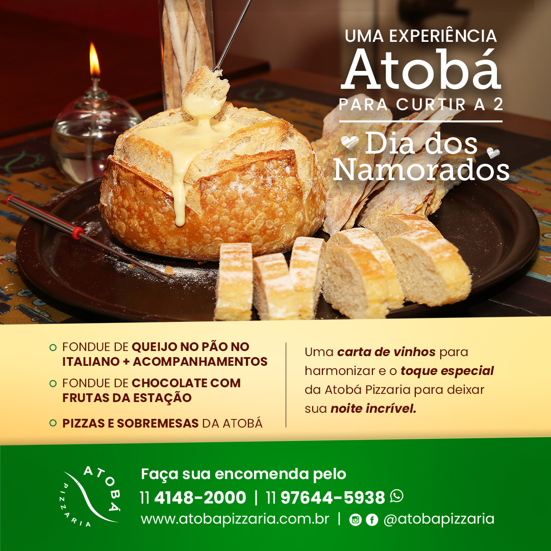 A noite do dia dos Namorados sempre foi especial para a Atobá Pizzaria, pois a casa prepara um ambiente aconchegante e intimista, onde os casais celebravam com amor e com a mistura única de pizza, música e arte. Mas, devido a quarentena, este ano a Atobá vai levar esta experiência para a casa do cliente. Além do cardápio original das pizzas, a casa montou um kit de fondue de queijo e chocolate que prometem deixar a comemoração a dois, muito mais incrível e, conta ainda com uma carta de vinhos selecionados para harmonizar com o cardápio.