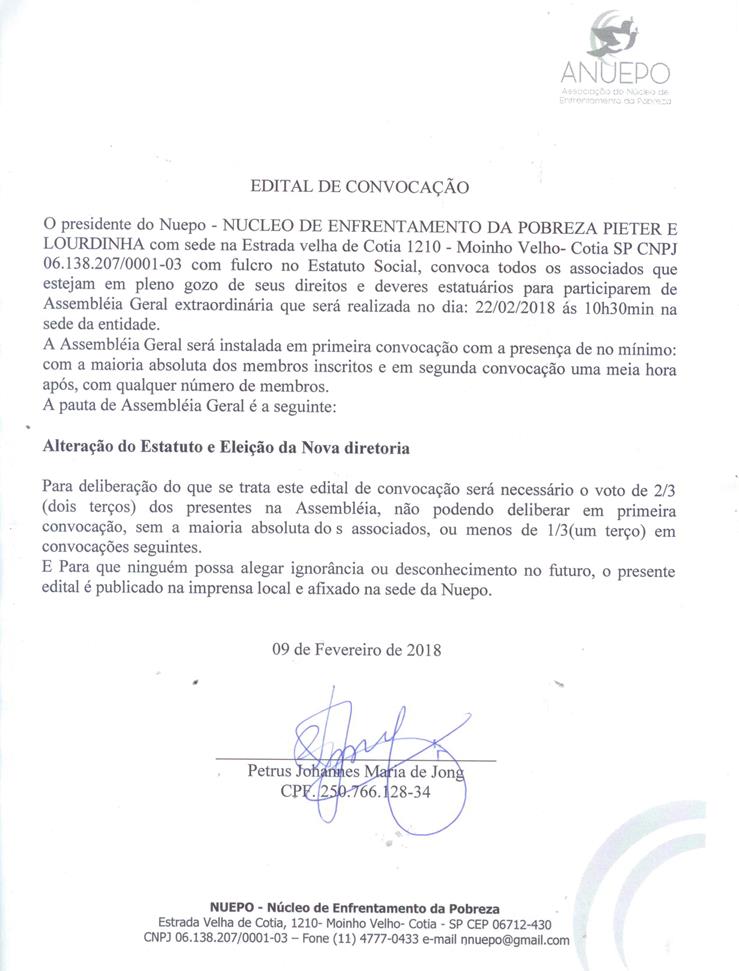 A pauta de Assembléia Geral é a Alteração do Estatuto