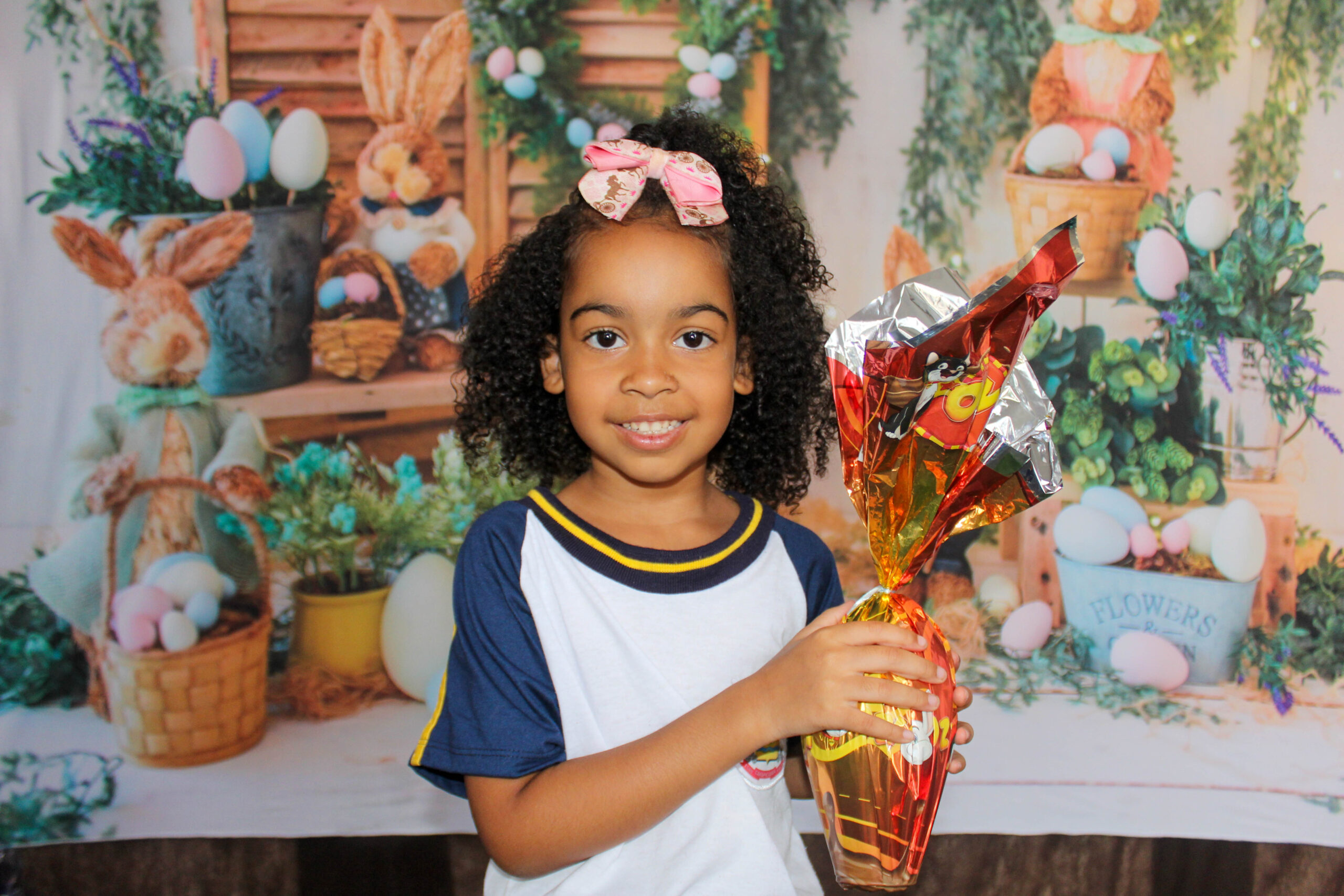 A programação também contou com atividades temáticas nas escolas. As crianças participaram da confecção de orelhinhas de coelho e, em algumas unidades, receberam a visita da coelhinha, tornando o momento ainda mais lúdico e encantador.
