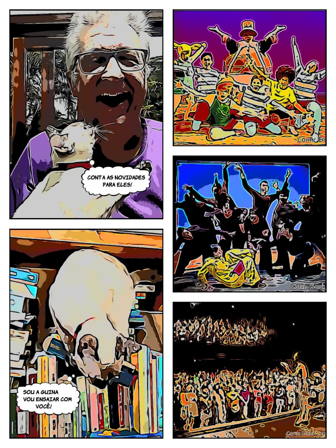 O professor virou um personagem de histórias em quadrinho, assim como a sua gata Guina, que contracena com ele. Fez tanto sucesso que os alunos, do fundamental 1 ao médio, começaram a enviar fotos para fazer quadrinhos com eles também e até a escola passou a usar os quadrinhos estilizados para se comunicar com os alunos.