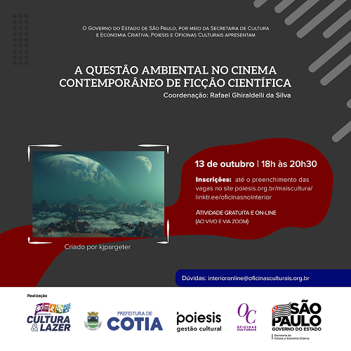 Estão abertas as inscrições para diversas oficinas gratuitas que acontecerão no mês de novembro. As aulas de Fotografia para adiar o fim do mundo, Clube de leitura dos dois olhares sobre Macbeth, de Shakspeare, A personagem como o elemento estruturante de uma narrativa seriada, Brincando de escritor: como dar uma oficina literária infantil?, Gestão financeira e prestação de contas no Proac editais, Oficina Graça e consciência, Foto preta – diálogos, narrativas decoloniais, Arte em revista e A era do ouro do livros russos infantis: ilustradores.