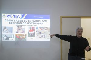 No encontro desta quinta-feira (12/07), os participantes acompanharam a palestra Linha de Cuidado da Obesidade, com a enfermeira Paola Maresca, coordenadora de Educação Permanente, da Secretaria de Saúde. Durante mais de uma hora, a enfermeira falou sobre os fatores predisponentes da obesidade, como prevenir e tirou dúvidas. Na sequência, as nutricionistas Lucimara Garcia, Silvana Olores e Marcia Corsi falaram sobre quantidade de calorias em determinados alimentos e adiantou que, no próximo encontro, vão ensinar como calcular a quantidade de caloria nas porções de alimentos.