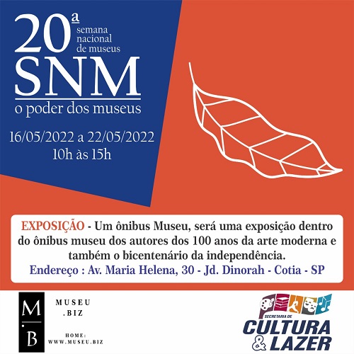 Em maio, Cotia passa a ter mais uma ação cultural destinada à sua população, com o Projeto “Arte para Todos”, elaborado pela equipe do “Arte para todos” e “Museu.Biz”, com o apoio de Secretaria de Cultura e Lazer de Cotia. Entre os dias 16 e 22 de maio, das 10h às 15h, a população poderá conferir, gratuitamente, uma exposição presencial no ônibus-museu, em frente à sede do museu.biz: Rua Dinorá, 65, Vila Dinorah.