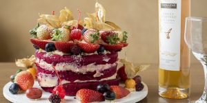 A receita deste bolo – feito com massa aerada vermelha com recheio de ganache branco e delipaste de frutas vermelhas – requer amor pela cozinha, pelos ingredientes e por todas as etapas da confeitaria. Todas as caraterísticas da Doceria Fantasias, que desde 1989 oferece saborosos bolos e salgados preparados com carinho e ingredientes criteriosamente selecionados.