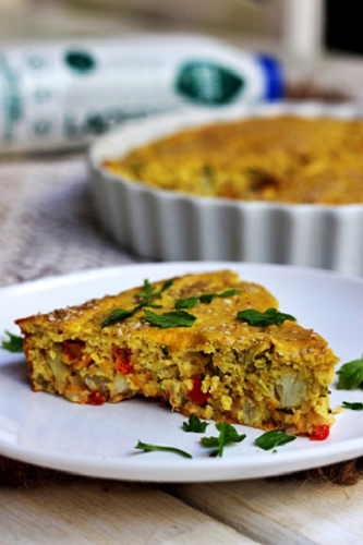 - Forre o fundo de uma travessa com um recheio de vegetais da sua preferência;