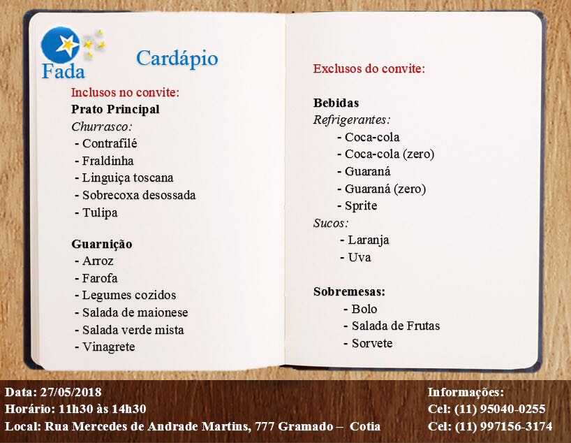 Informações e reservas de convites: (11) 95040-0255/ 97156-3174