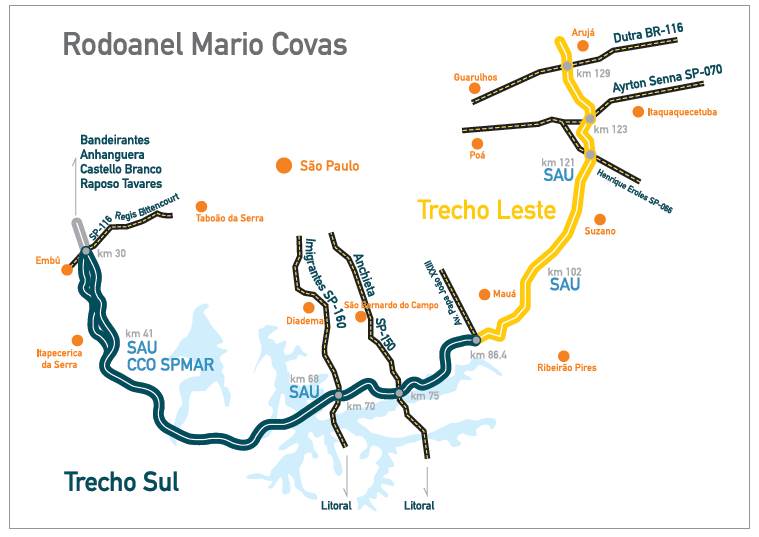 A Concessionária SPMAR, responsável pela administração dos trechos Sul e Leste do Rodoanel Mario Covas, estima a passagem de cerca de 503 mil veículos durante o feriado prolongado de Páscoa, entre os dias 29/03 e 01/04. No total, a previsão é que 374 mil veículos circulem pelo Trecho Sul e 129 mil pelo Trecho Leste.