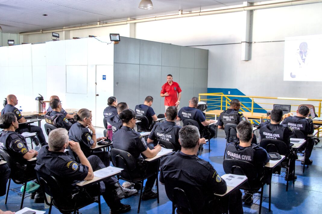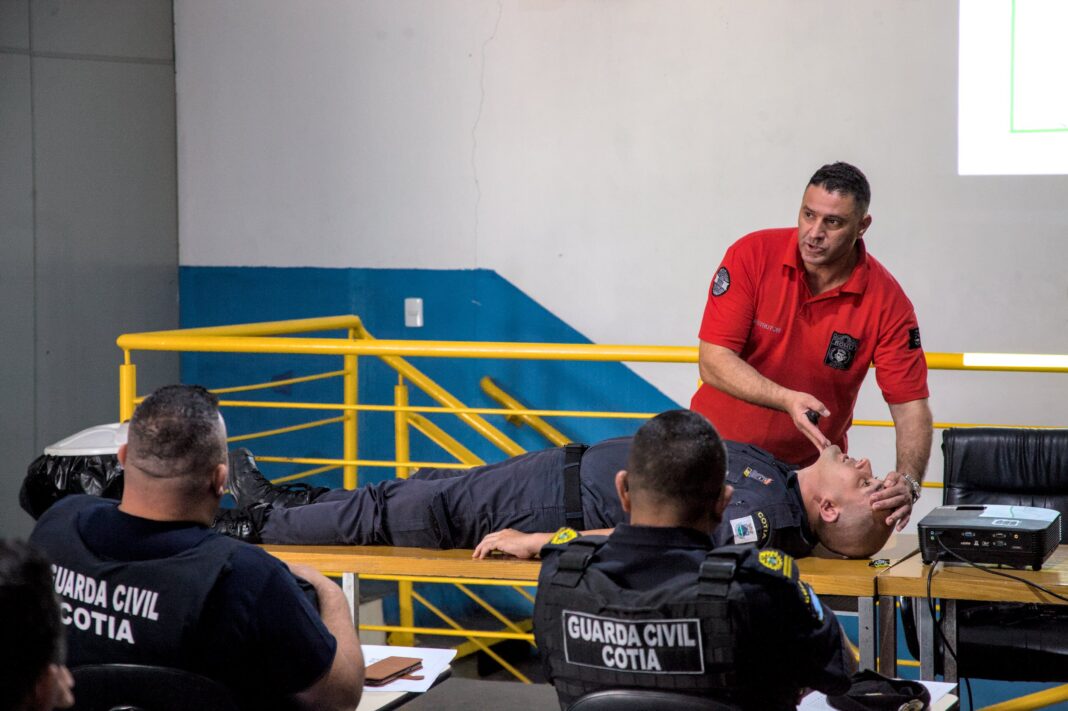 A requalificação acontece no quartel da GCM e está sendo ministrada pelo instrutor Valdinei de Moraes Neto, Secretário Adjunto de Segurança Pública de Cotia, que tem passado explicações teóricas e práticas. “Quando o GCM dá suporte a uma ocorrência de trânsito com vítima, por exemplo, todo o comportamento ativo impacta no sucesso daquele atendimento, desde a sinalização do local, até a massagem cardíaca e outros”, disse Vadinei.
