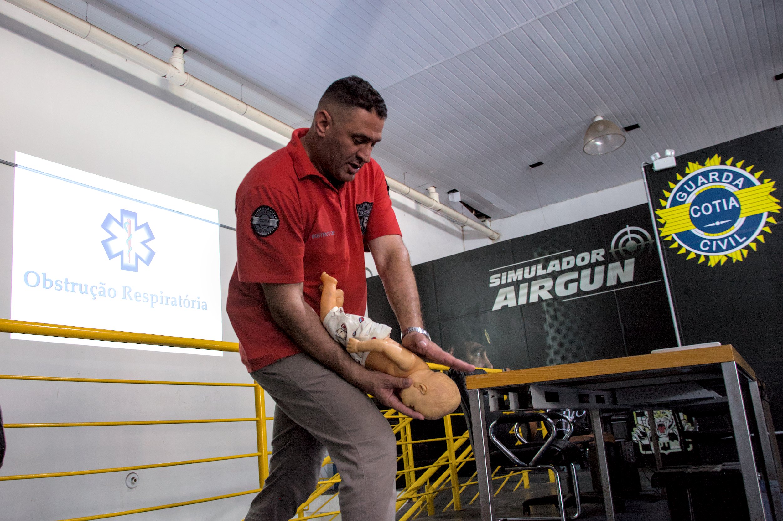 Nesta semana, os Guardas Civis Municipais (GCMs) de Cotia iniciaram a participação na requalificação anual em primeiros socorros exigida pela Polícia Federal. O objetivo é promover uma reciclagem dos agentes de segurança que, no dia a dia, atendem diversas emergências relacionadas a vítimas de atropelamento e outros acidentes, além de engasgamento de crianças e adultos.