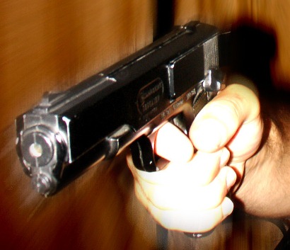 A testemunha disse que o suspeito acabara de tentar roubar uma carga de ovos pasteurizados ele que levava na picape, usando a arma para ameaçá-lo. Com a aproximação inesperada da viatura, ele desistiu do crime.