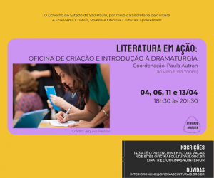 Literatura em ação: oficina de criação e introdução à dramaturgia
