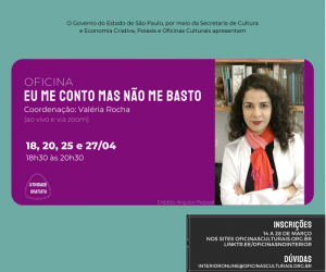 Descrição: As (os) participantes serão convidadas (os) a experimentarem a arte de narrar histórias, em especial histórias autobiográficas. Para isso, traremos uma série de provocações que possam ajudar cada pessoa da turma a encontrar sua forma de contar histórias: como usar o olhar, a voz e o corpo para fortalecer a história que queremos contar? Como ser generosa (o) com quem nos escuta e com minha história? Qual a importância de se narrar histórias autobiográficas? Por que compartilhar minhas narrativas com outras pessoas? Como fazer do ato de contar histórias autobiográficas um ato de partilha e escuta, um ato que vá na contramão do espaço do puro ego e exibicionismo, espaço tão comum nos nossos dias e fortemente enaltecido pelas redes sociais? Nesse sentido, a oficina também visa pesquisar o ato de ouvir: como eu me coloco para escutar a história da outra pessoa, verdadeiramente escutar, afastando de mim os julgamentos precoces, afastando a escuta ansiosa (que enquanto escuta já pensa na resposta).
