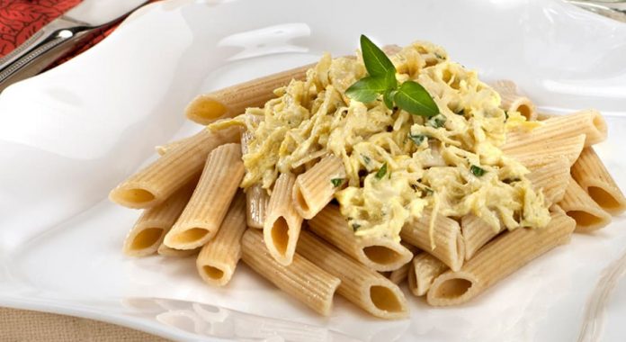 Receita: macarrão integral com molho de iogurte, frango e curry