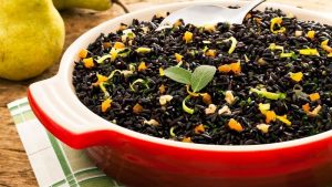 Arroz preto com peras assadas
