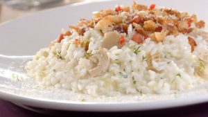 Risoto de alcachofra com farofa crocante