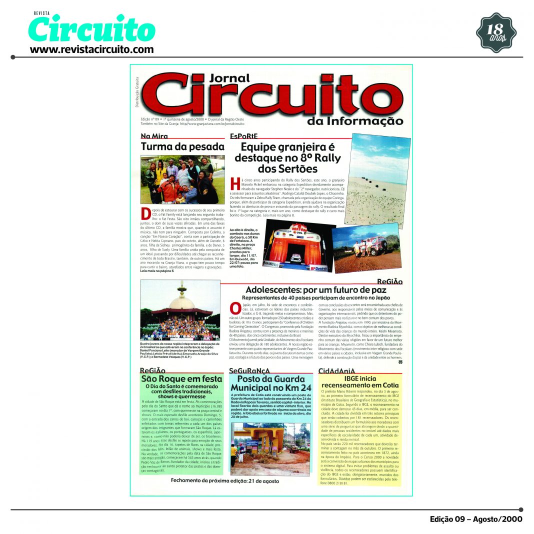 Foi em abril de 2000 que a primeira edição do então Jornal Circuito da Informação ganhou as ruas da Granja Viana. Uma história com mais de 200 edições…