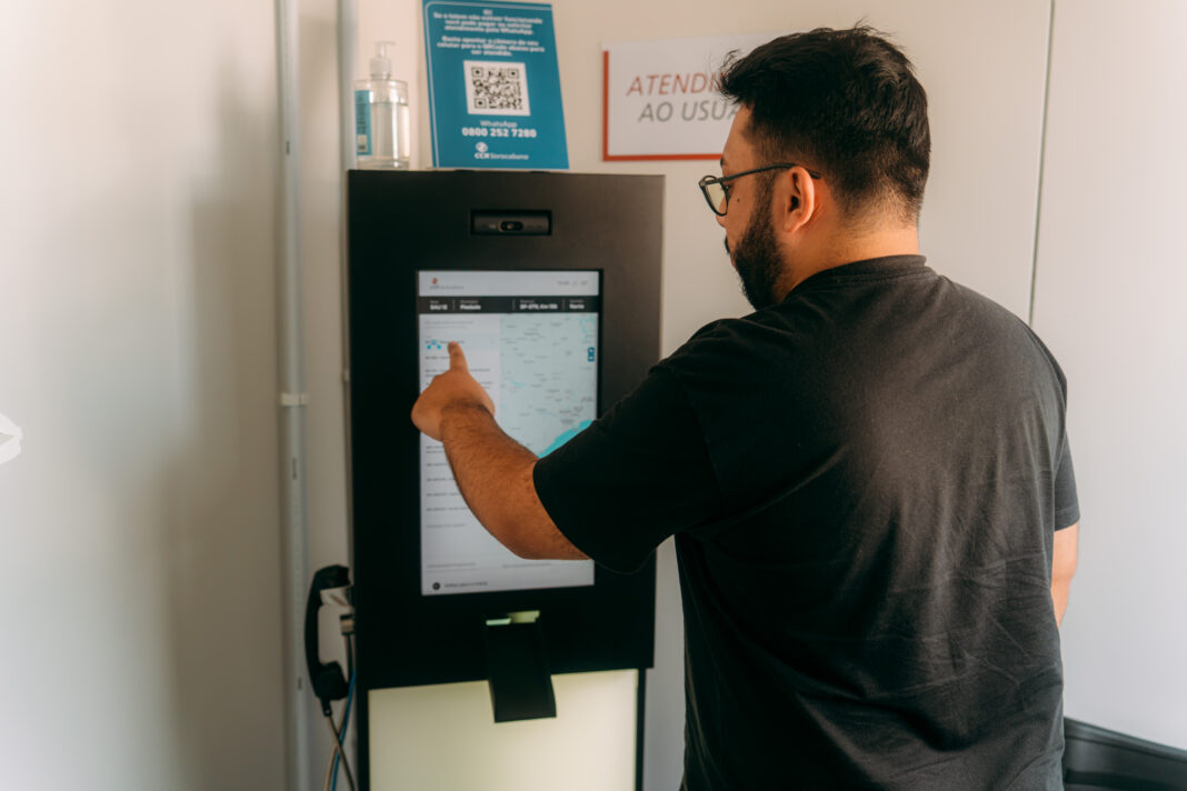 Você para na base, acessa o totem e digita a placa do seu veículo. O sistema mostra os valores pendentes. Um QR Code aparece na tela. É só escanear com o app do seu banco e confirmar o Pix. Pronto. Pagamento feito. Quer comprovante? Pode pedir na hora. Tudo automatizado.