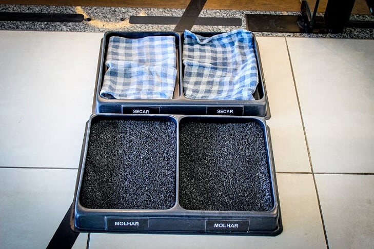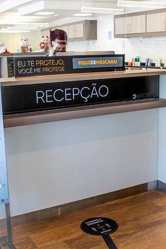 A segurança pode ser conferida já na entrada, com acessórios para higienização dos calçados e a medição de temperatura antes de se aproximar da recepção. A recepção por sua vez, foi adaptada para isolar os profissionais de atendimento das pessoas que entrarem. Ainda na entrada, avisos e alertas acerca do uso obrigatório de máscaras e do álcool gel (que está distribuído em vários pontos de fácil acesso pelo estúdio).