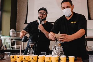 Imagine chegar na padaria e sentir aquele aroma de café torrado na hora, com blends à sua escolha e grãos de diferentes partes do mundo. Assim é o novo espaço da padaria Trilha do Pão Granja, assinado pela Roastelier by Nescafé. A Trilha do Café, como foi batizada, traz uma solução artesanal de torrefação de grãos, que redefine os padrões do café fresco e garante a qualidade da cadeia produtiva à xícara. O lançamento aconteceu no dia 19 de novembro, em um evento que contou com participação do barista Henrique Pin, da Flavors que comandou a degustação e falou sobre a desmistificação dos cafés especiais. “Tivemos a oportunidade de compartilhar com os nossos clientes, uma verdadeira aula sobre cafés, grãos e mostrar que o novo espaço da padaria traz um conceito inovador para a região”, afirma Rodrigo de Holanda, empresário e sócio da Trilha do Pão.