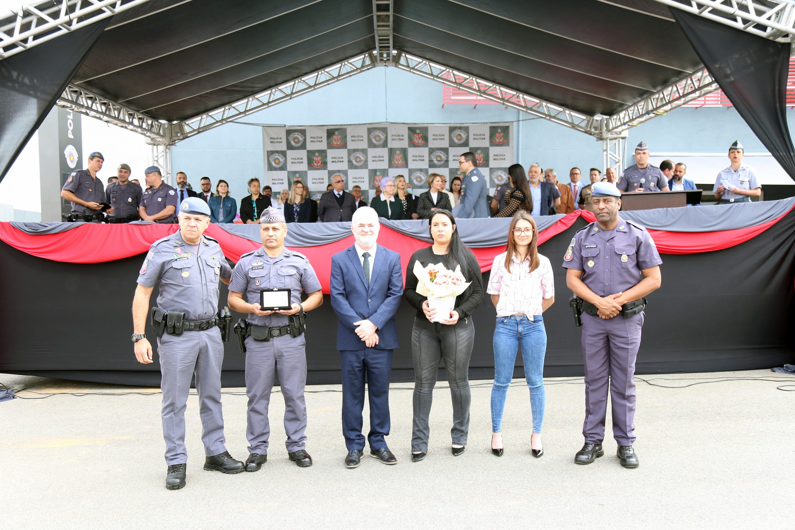 Durante a solenidade de inauguração, as autoridades presentes homenagearam o CB PM Roque Gonçalves, policial com mais tempo na CIA, representando todos os soldados da Corporação.